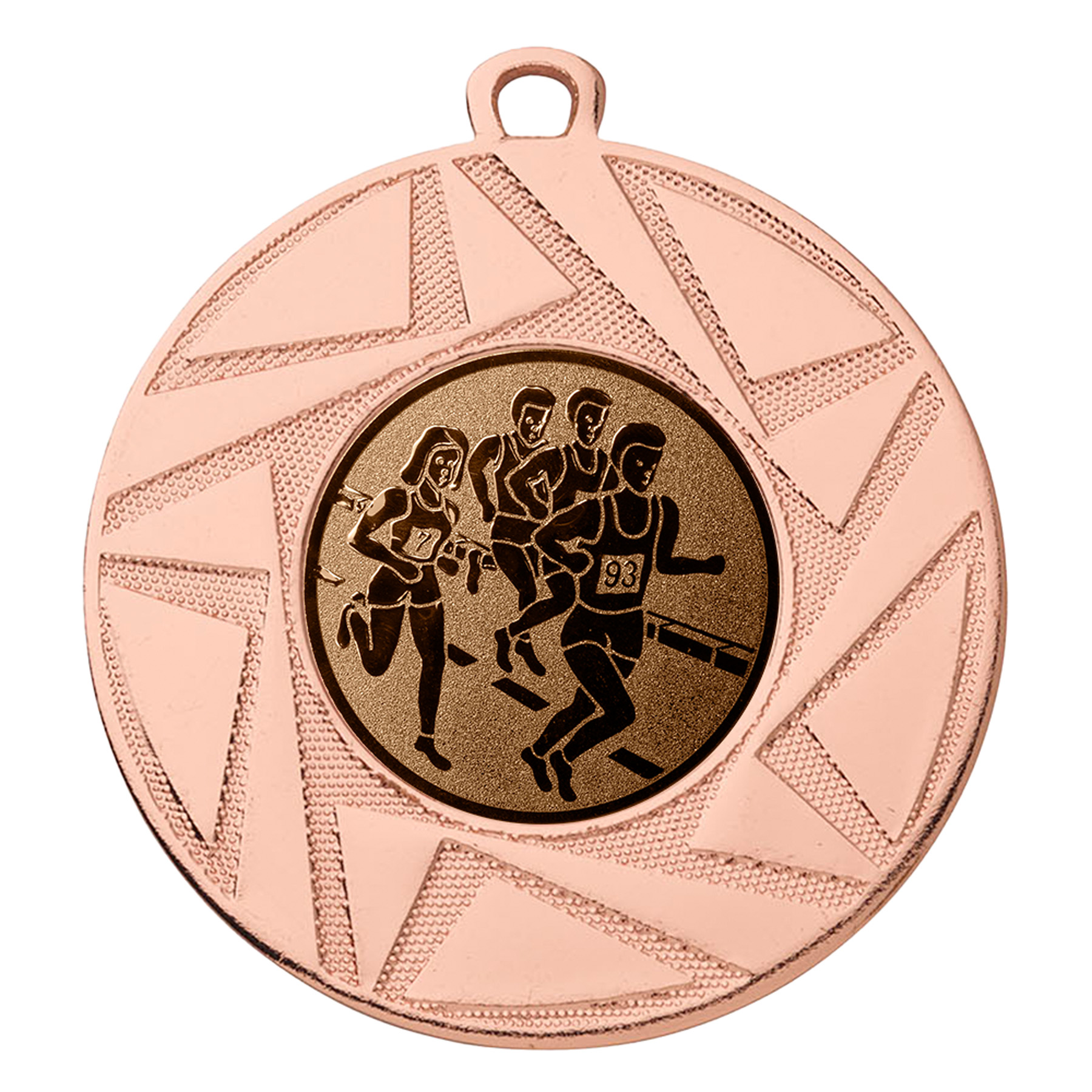 Das mittig platzierte Emblem mit 25 mm Durchmesser zeigt ein passendes Laufsport-Motiv und ist in den klassischen Farben Gold, Silber oder Bronze erhältlich. Die Montage erfolgt bereits vor dem Versand, sodass die Medaille direkt für die Auszeichnung von 1. bis 3. Plätzen oder Teilnehmergruppen verwendet werden kann.