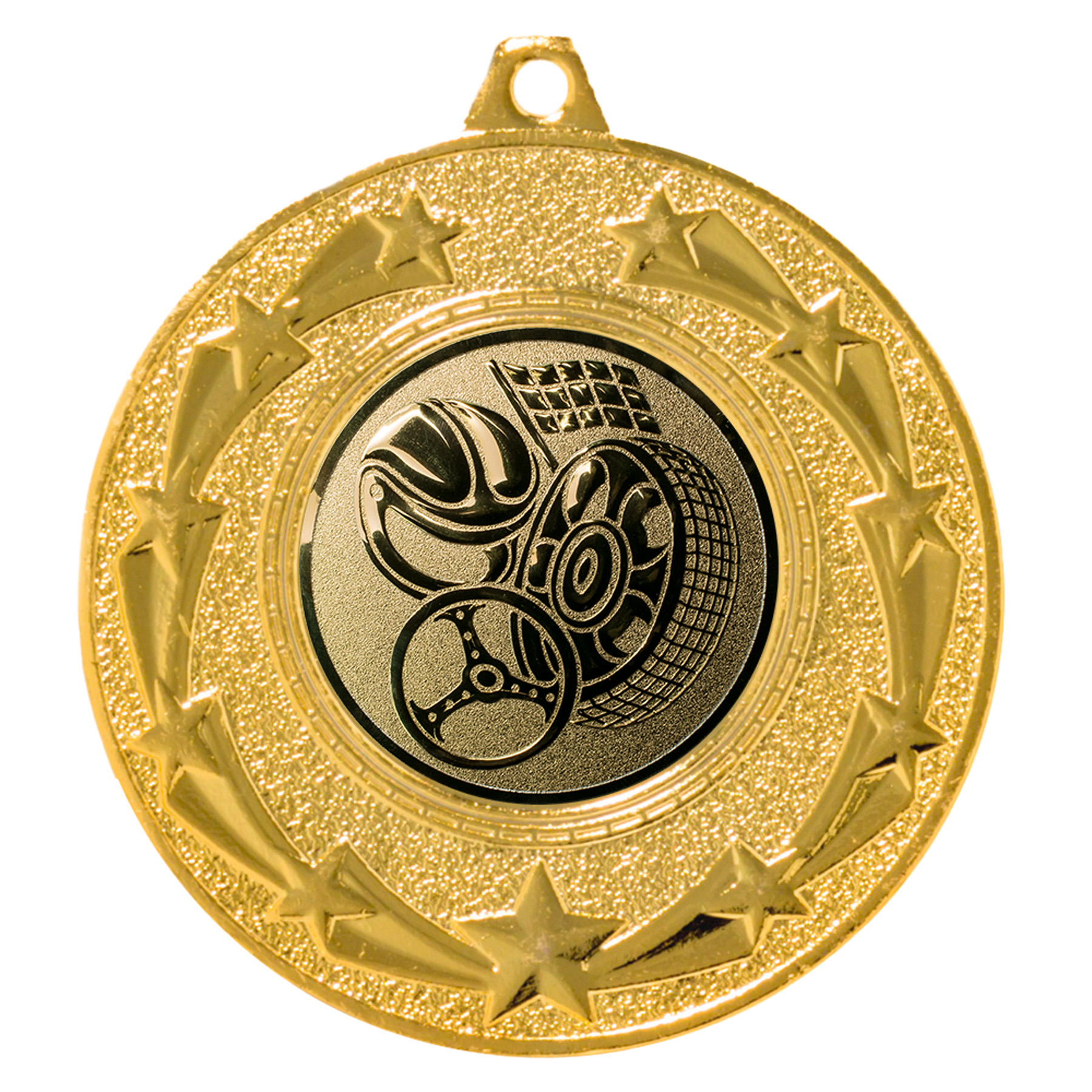 Die Motorsport-Medaille "Ginster" ist die perfekte Auszeichnung für alle Motorsport-Events, ob professionelle Rennen oder lokale Wettkämpfe. Mit einem Durchmesser von 50 mm und einem modernen Design in Gold, Silber und Bronze bietet diese Medaille eine stilvolle und wertvolle Möglichkeit, herausragende Leistungen zu würdigen. Sie kommt mit einem kostenlosen Emblem, das in drei verschiedenen Ausführungen erhältlich ist, und bietet zusätzlich die Möglichkeit, eine individuelle Beschriftung auf der Rückseite anzubringen. Dies macht die Medaille zu einem einzigartigen Andenken für Motorsportler und Teams.