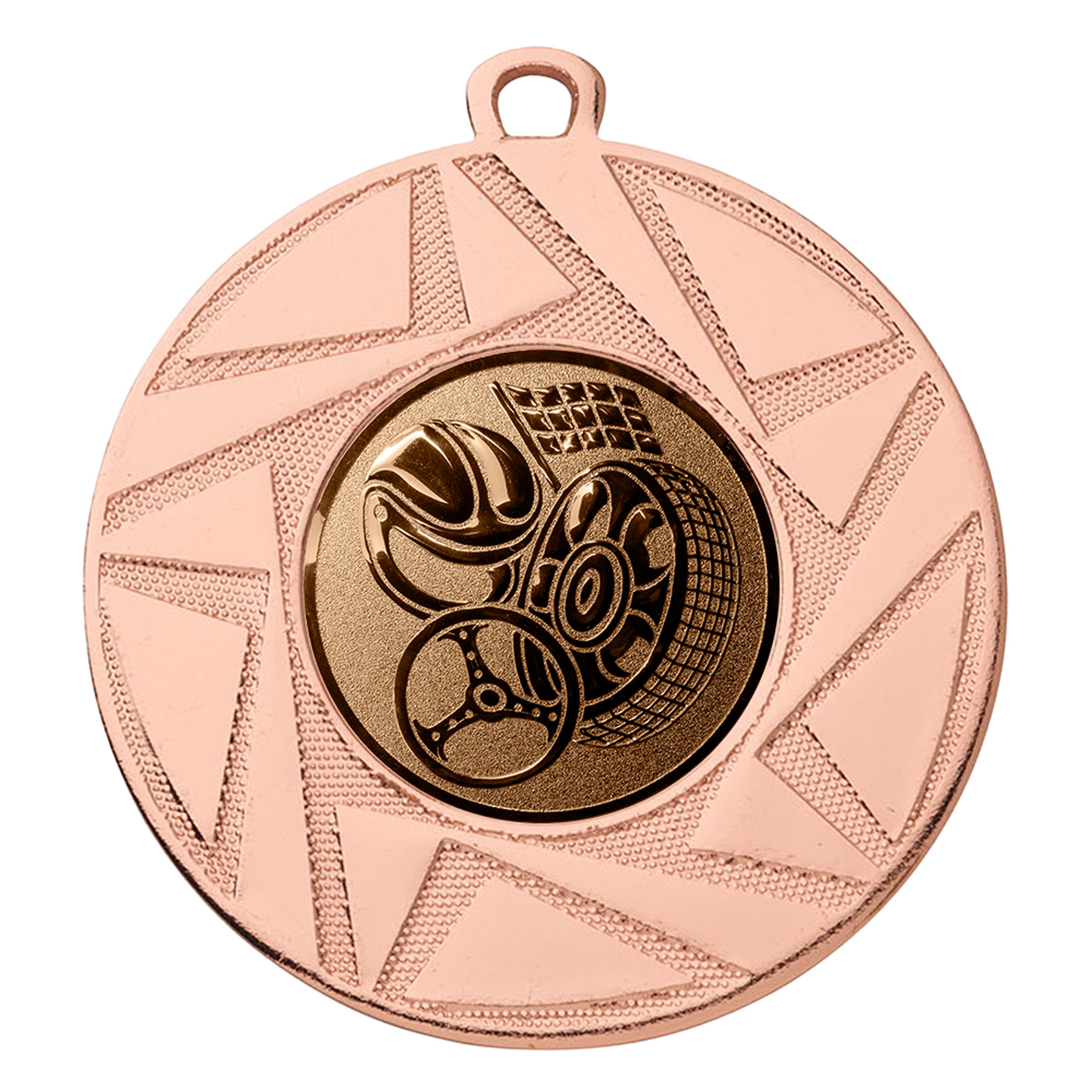 Jede Medaille ist mit einem 25 mm großen Motorsport-Emblem versehen, das in Gold, Silber oder Bronze erhältlich ist. Das Emblem zeigt ein sportliches Motiv passend zum Motorsport und ist bereits fest montiert. Ideal zur Unterscheidung der Platzierungen und zur schnellen Vergabe bei der Siegerehrung.