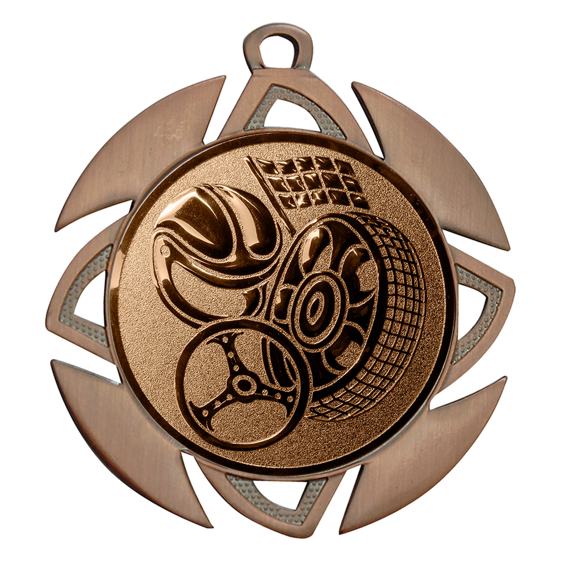 Die Motorsportmedaille „Allium“ begeistert durch ihr modernes, sportliches Design. Das große Emblem symbolisiert den Wettkampfcharakter des Motorsports und macht die Medaille zu einem echten Blickfang. Dank der klassischen Farbvarianten Gold, Silber und Bronze können Sie die Medaillen perfekt auf die Platzierungen abstimmen.