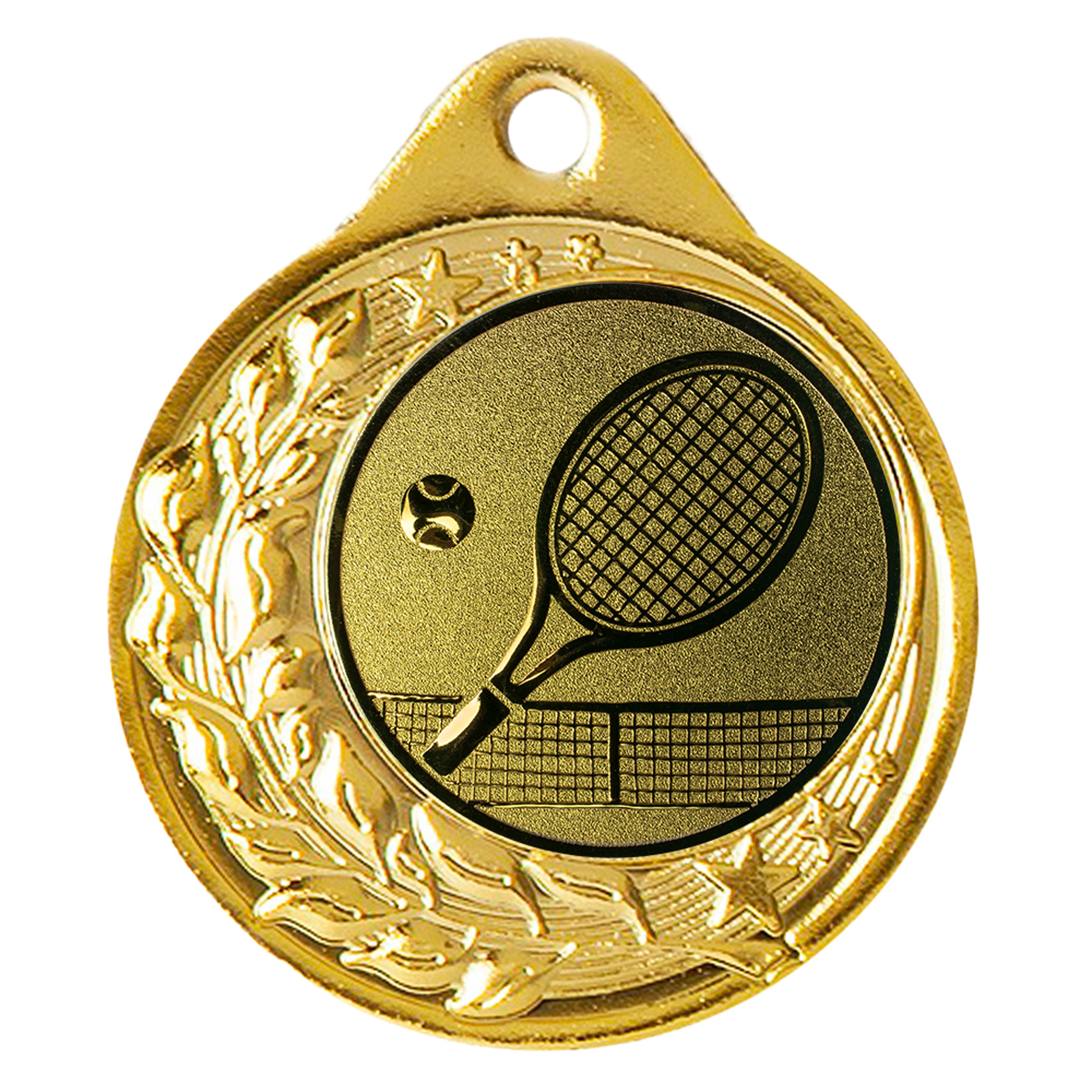Im Zentrum der Medaille befindet sich ein 25 mm großes Emblem mit einem Tennis-Motiv. Du hast die Wahl zwischen Gold, Silber oder Bronze, passend zur jeweiligen Platzierung. Das Emblem ist bereits vormontiert, sodass du die Medaille direkt bei der Siegerehrung überreichen kannst – perfekt für den ersten, zweiten oder dritten Platz.