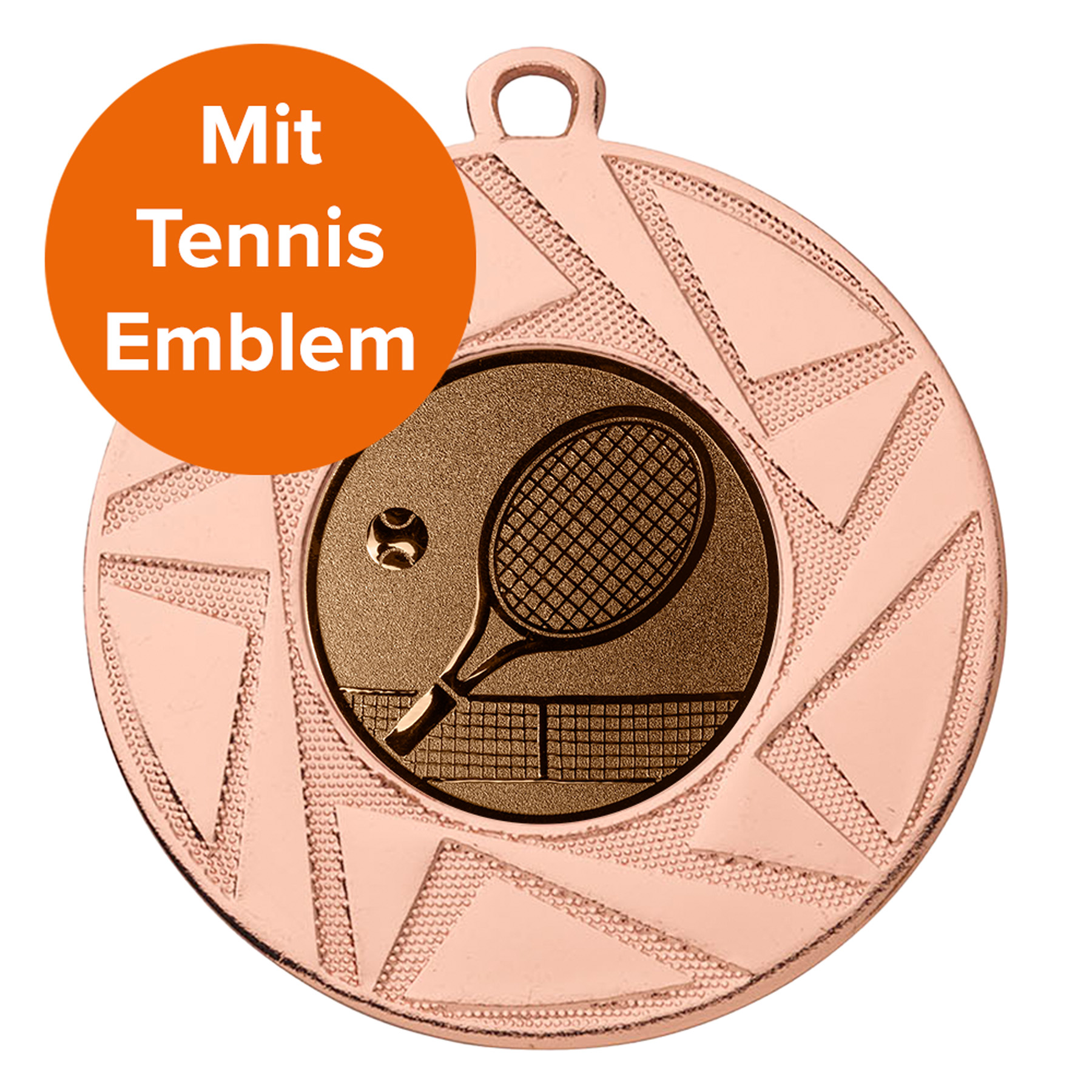 Im Zentrum der Medaille befindet sich ein 25 mm großes Emblem mit einem Tennis-Motiv. Du hast die Wahl zwischen Gold, Silber oder Bronze, passend zur jeweiligen Platzierung. Das Emblem ist bereits vormontiert, sodass du die Medaille direkt bei der Siegerehrung überreichen kannst – perfekt für den ersten, zweiten oder dritten Platz.