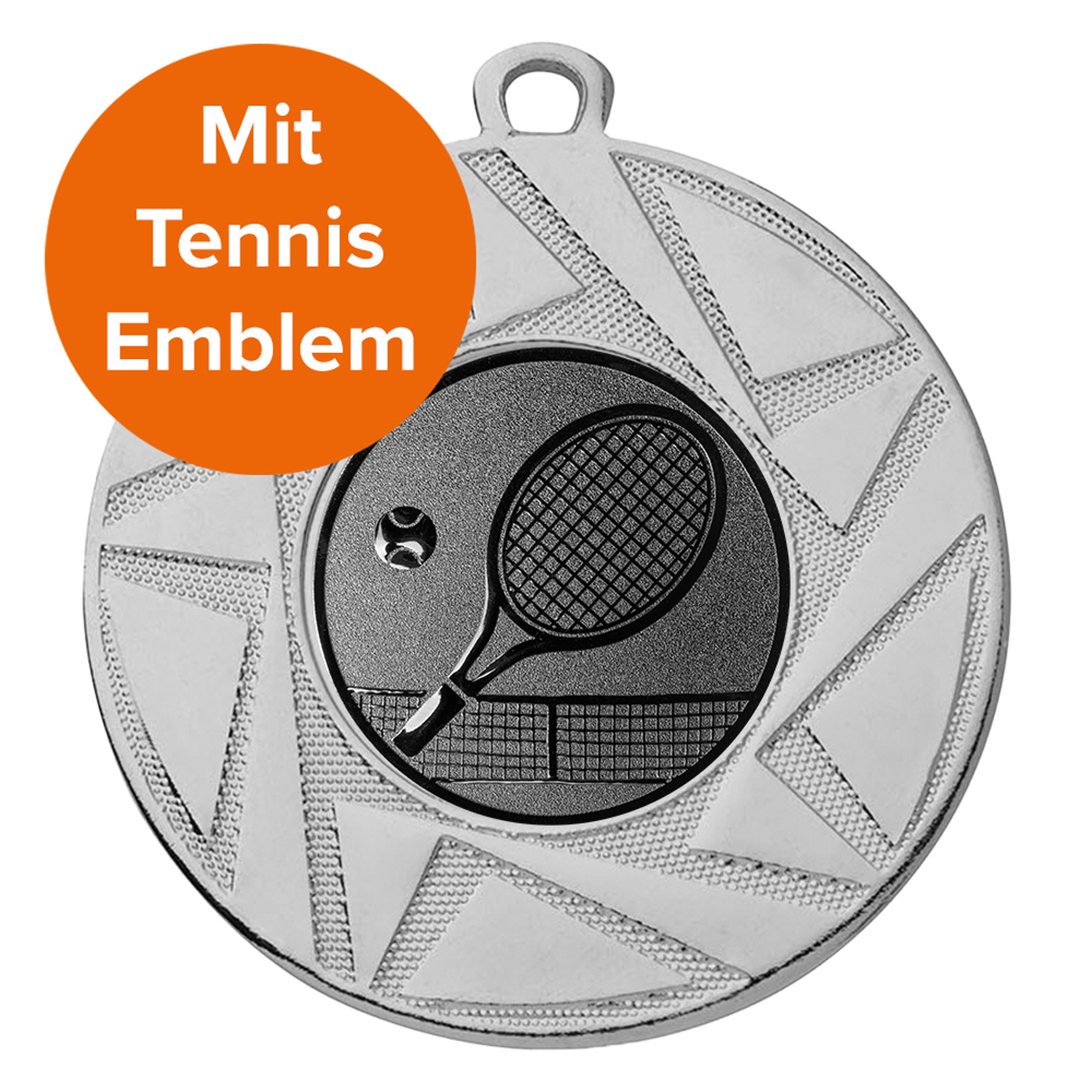 Im Zentrum der Medaille befindet sich ein 25 mm großes Emblem mit einem Tennis-Motiv. Du hast die Wahl zwischen Gold, Silber oder Bronze, passend zur jeweiligen Platzierung. Das Emblem ist bereits vormontiert, sodass du die Medaille direkt bei der Siegerehrung überreichen kannst – perfekt für den ersten, zweiten oder dritten Platz.